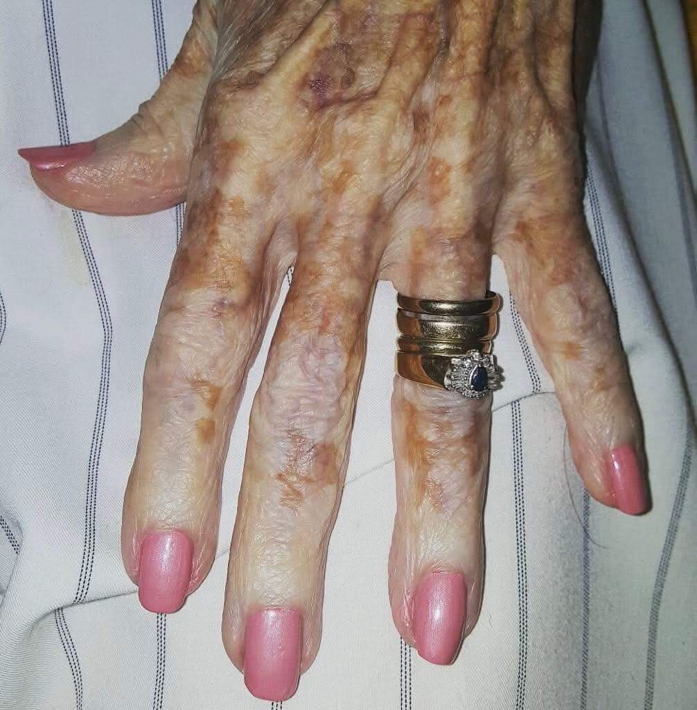 « Mes mains sont laides, et je ne veux pas attirer l’attention sur elles », m’a-t-elle dit quand je lui ai demandé pourquoi elle voulait des ongles clairs. « Vos mains racontent l’histoire de votre vie », lui ai-je répondu pensivement. Elles racontent des histoires d’aventure, d’amour et de soin. Ces mains ont tenu et touché des choses que la plupart des gens ne peuvent qu’espérer vivre au cours de leur vie. Après cela, elle a décidé de peindre ses ongles en rose.