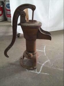 À l’époque, lorsque l’électricité était encore un rêve fantaisiste, cette pompe à eau de puits à main était l’outil indispensable pour obtenir cette magie H2O. C’était comme avoir votre propre génie de puits – pas besoin de frotter des lampes. Les gens comptaient sur cette humble pompe pour étancher leur soif, arroser leurs cultures et peut-être même remplir une baignoire pour un bon vieux bain.