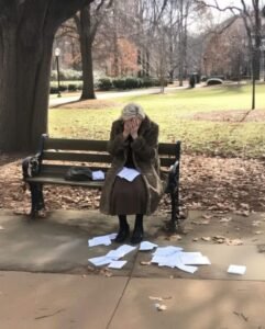 Un matin frais, alors que je promenais Ethan dans le parc, j’ai aperçu une silhouette familière courbée sur un banc.