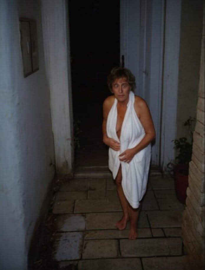 Elle était enroulée dans une serviette, ses cheveux encore mouillés, les yeux écarquillés par la panique.