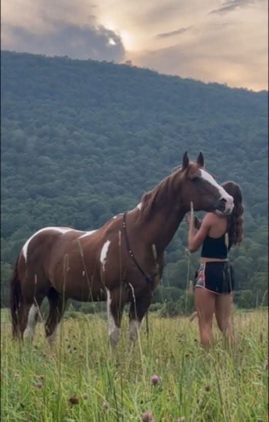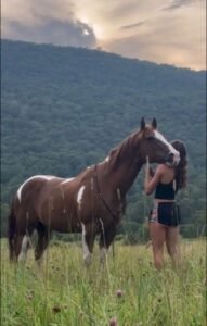 Enthousiasmée par leur excursion, Sarah prit une photo d’elle-même en train d’embrasser son cheval devant les impressionnantes montagnes dans l’intention de montrer à son conjoint, Jack, qui n’avait pas pu les accompagner, ce qu’ils avaient vécu.