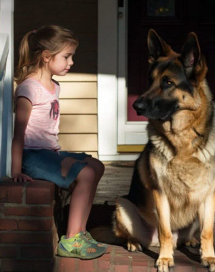 Elle adorait Bo, mon gentil Berger Allemand, et passait des heures à jouer avec lui.