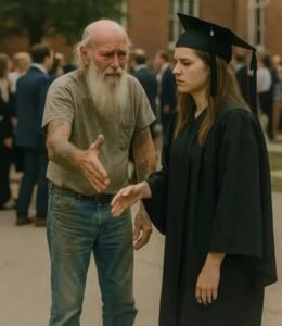 Le souvenir le plus douloureux reste le jour de ma remise de diplôme. Tous les parents étaient en costume, souriants, fiers de leurs enfants. Mon père, lui, était venu dans son meilleur jean et une chemise, le visage marqué par les années, les tatouages pâlis. Quand il a tendu les bras vers moi après la cérémonie, j’ai reculé et, au lieu d’un câlin, je lui ai serré la main froidement.