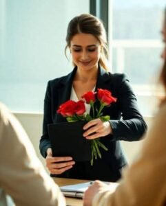 Et sur mon bureau, il y avait toujours un vase de roses rouges.