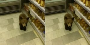 L’ourse s’est approchée de l’étagère, a reniflé l’air, puis… s’est simplement assise devant les pots et a commencé à savourer le miel, pot après pot, comme si c’était son petit-déjeuner personnel.