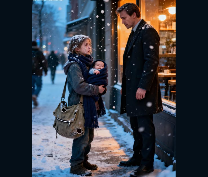 Il se retourna. Une fillette se tenait près du trottoir, les cheveux emmêlés par le froid, son manteau bien trop grand. Elle portait dans ses bras un petit paquet, enveloppé dans une couverture si fine qu’elle tenait à peine. « Mon frère a faim », dit-elle doucement. « Juste une brique de lait. Je vous rembourserai quand je serai grande. »