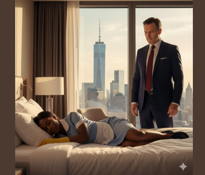 Son visage montrait la fatigue, ses mains étaient rugueuses à force de travail, et son uniforme était sale. Elle n’avait même pas conscience qu’elle était allongée sur le lit d’un millionnaire.