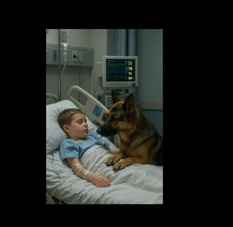 Sa mère, les yeux brûlés par les larmes et le manque de sommeil, passait ses journées à lui tenir la main, lui murmurant des mots dont elle n’était pas sûre qu’il puisse encore entendre. Son père, d’ordinaire si fort, restait silencieux, le regard perdu, comme s’il craignait qu’un mot prononcé à voix haute ne transforme leurs craintes en réalité. Même les médecins évitaient leur regard : eux aussi savaient que le miracle tardait trop. Mais une créature refusait catégoriquement de se résigner : le chien du garçon, un berger allemand nommé Rico. Depuis l’accident, il se tenait chaque jour devant les portes de l’hôpital, immobile, patient, les oreilles baissées, espérant qu’on le laisse entrer. Il ne comprenait pas les règles, seulement l’absence de son petit humain. Chaque soir, une fois ses parents partis, Rico posait sa tête sur le sol froid et gémissait doucement, comme si son cœur se brisait un peu plus.
