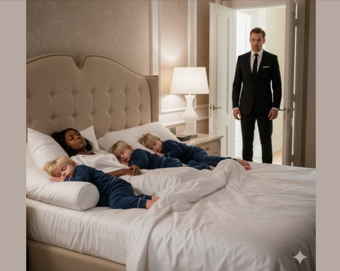 Le lendemain matin, Naomi était debout avant l’aube. Elle balaya l’escalier de marbre, redressa les rideaux et prépara un plateau pour les enfants. Elle venait à peine de le poser sur la table de la salle à manger que les triplés débarquèrent comme de petites tornades.