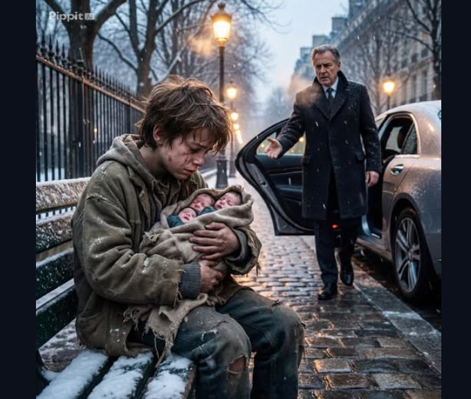 La neige descendait en épais flocons du ciel, déposant sur le parc une couche immaculée et profonde. Les arbres se tenaient figés, sans un bruit. Les balançoires oscillaient avec une légèreté dans la bise glaciale, mais personne n’était là pour y jouer. L’endroit tout entier paraissait désert et abandonné. C’est alors qu’à travers ce rideau blanc, un jeune garçon émergea. Il ne devait pas avoir plus de sept ans. Son manteau était usé et trop léger. Ses chaussures, trempées, laissaient voir des fissures. Mais le froid semblait le laisser indifférent. Dans ses bras, il portait trois nourrissons, étroitement emmitouflés dans de vieilles couvertures élimées.